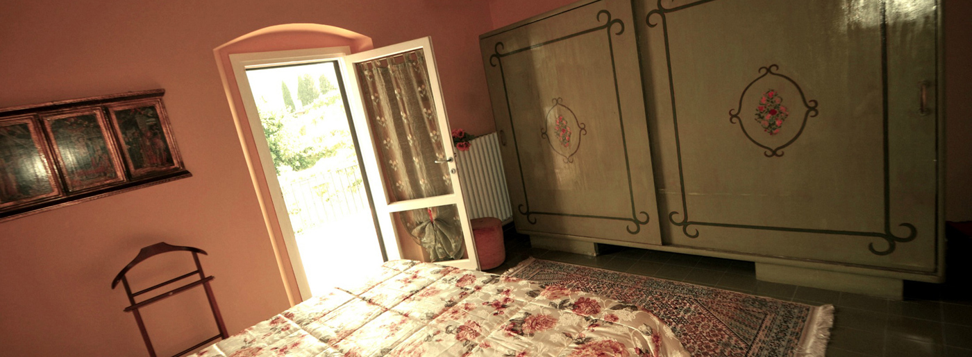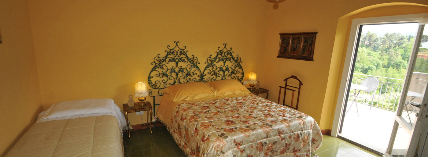 La Camera Girasole è molto ampia, domina il color giallo e dispone di letto matrimoniale e letto singolo, grande armadio, tv, aria condizionata, riscaldamento, bollitore elettrico e terrazzo con vista sia sul terreno coltivato ad olivi, sia su Pistoia e zone limitrofe.
