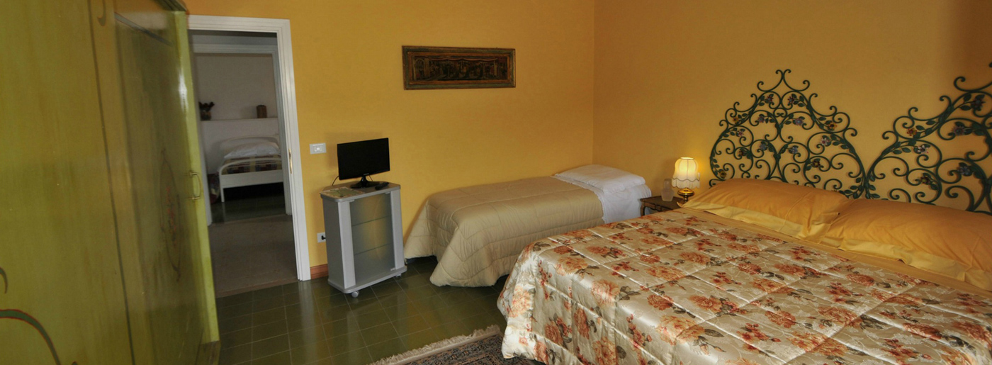 Le Camere Girasole e Gelsomino sono collegate tra loro ed hanno il bagno in comune. I posti letto sono 5, per cui ideale per una famiglia composta da un minimo di 3 ad un massimo di 5 persone, oppure per un gruppo di amici.